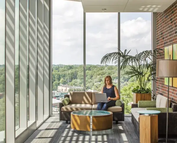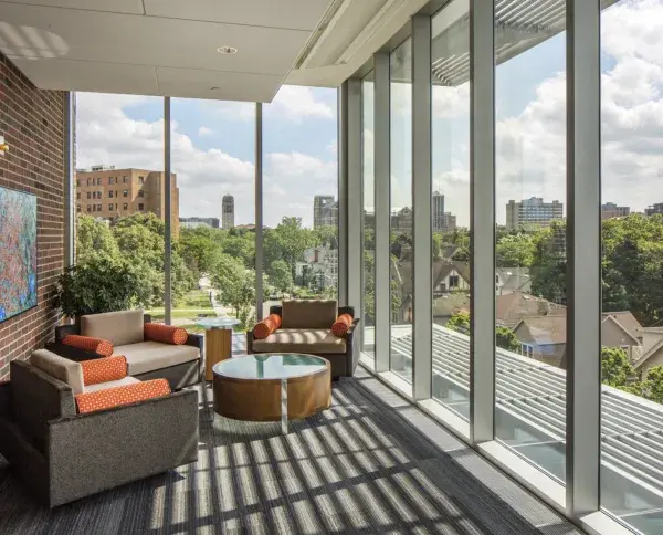 The University of Michigan built a large, 78,000-square-foot facility to house its School of Nursing. Overlooking the Huron River Valley, the building’s large windows needed to both open the facility up to the surrounding landscape and shade learning and instructional spaces.