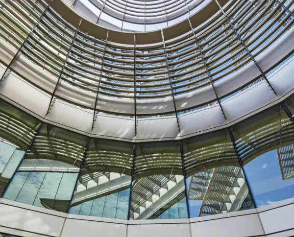 Custom curved sunshades sunshades exploration tower iconic building.
